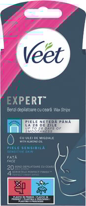 Veet Expert Bandes d'épilation du visage pour peau sensible, 20 pièces