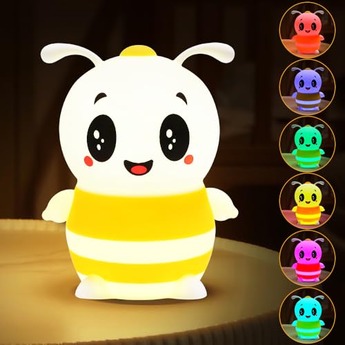 Niuny Forme Les abeilles Créative Veilleuse Enfant,16 Couleurs+Télécommande Veilleuse Bébé Veilleuse Enfant Rechargeable+Contrôle tactile,1200 mAh Veilleuse Rechargeable Bebe Kawaii Deco Chambre Bebe
