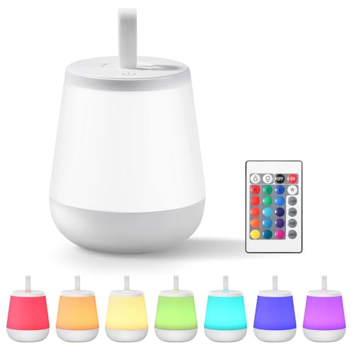 One Fire Veilleuse Bébé Veilleuse Enfant Rechargeable 2400mAh, 8 Luminosités+10 Couleurs+Télécommand Lampe de Chevet Sans Fil, RGB+Minutage Lampe de Chevet Tactile, Decoration Chambre,Bébé,Ambiance