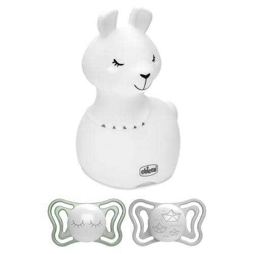 Chicco Set Veilleuse et 2 Sucettes Lumi 16-36 Mois, Veilleuse bébé rechargeable avec 8 lumières multicolores, Sucette 16-36 Mois, s'allume dans le noir, Tétine en Silicone, Idée Cadeau