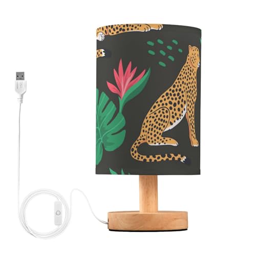 Mnsruu Lampe de chevet LED avec ports de charge USB, veilleuse de bureau motif léopard de la jungle, lampe de chevet antidérapante pour chambre à coucher, salon, chambre d'enfant