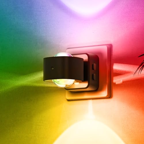 LOHAS-LED Veilleuse avec capteur crépusculaire, prise rotative à 180°, 11 couleurs RVB et ambre, pour Noël, cadeau de Noël, chambre d'enfant, fête, chambre à coucher, 1 pièce
