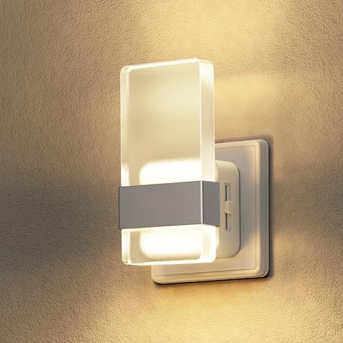 LOHAS-LED Veilleuse Acrylique avec Détecteur Crépuscule-Aube [1 Unité] - Luminosité Réglable 0-100LM, Blanc Chaud 3000K pour Couloir, Salle de Bain, Escalier & Chambre | Installation par Prise
