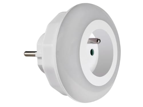 Perel Veilleuse LED avec prise et capteur crépusculaire, activation automatique à l'obscurité, couleur unique : LED blanc, idéal pour salon, chambre à coucher, chambre d'enfant, couloir, avec terre
