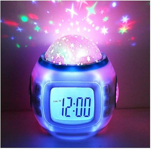 TKMARS Réveil Enfant avec Projecteur d'Étoiles Veilleuse LED Lumineuse Musicale Cadeaux de Noël Cadeaux d'Anniversaire pour Garçons Filles Bébé, Multicolore(CS01046)