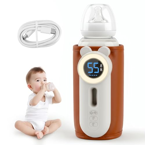 Chauffe-biberon Portable pour Voyage, Chauffe Biberon Nomade pour Bébé Sans Fil Voiture 8000mAh, avec Contrôle Température, Ecran LED et Veilleuse, Chauffage Rapide, Température Réglable 35°C à 55°C