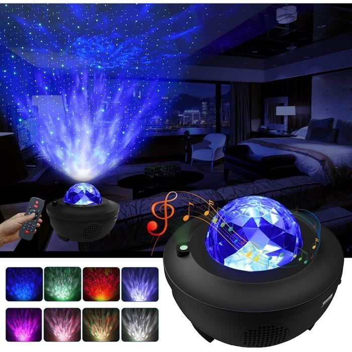 Lampe Projecteur LED - Veilleuse Projecteur Vagues Océan avec télécommande - 7 Modes de Couleur/ 4 Sons de Musique