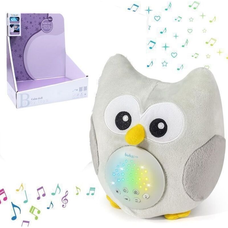 (Gris)Veilleuse Bebe Capteur Activé par Cry Enfant Dodo Doux Chouette - Cadeau Bébé Peluche Berceuse Bebe-Bruit Blanc avec 10 Sons