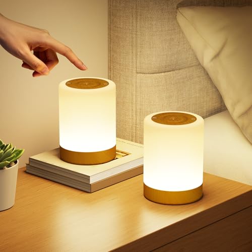 NIWOHOM 2 Pcs Lampe de Chevet Tactile, Dimmable Lampe Sans Fil Rechargeable avec 5 Modes et 256 Couleurs RVB Changeantes, Lumière Chaude Veilleuse Adulte avec Minuteur pour Chambre, Salon, Camping