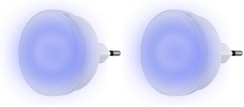 REV Veilleuse LED prise 230V 0,2W – Lampe de nuit à faible consommation, éclairage permanent, lumière bleue, boîtier blanc, prise européenne (Lot de 2)