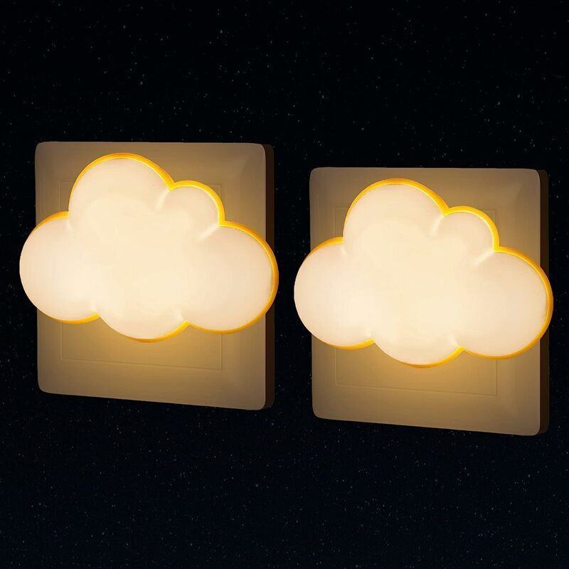 Veilleuse Nuage Prise Électrique [Lot de 2] Lampe Nomade Enfant de Nuit avec Capteur Crépusculaire, Petite LED Applique pour Chambre de Bébé, Lampe