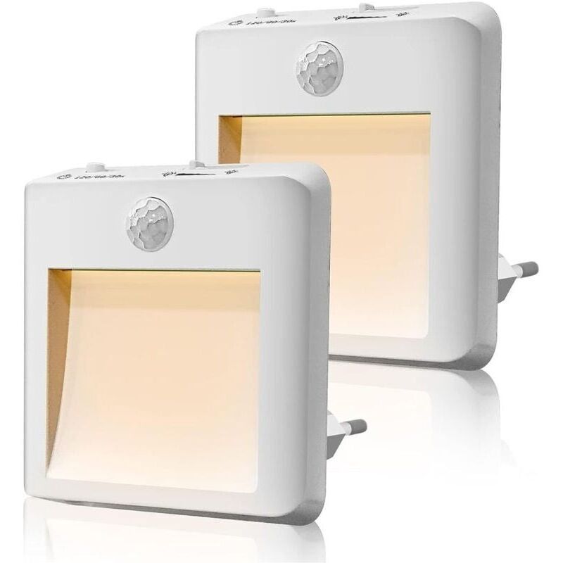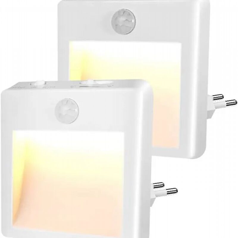 Veilleuse Prise Electrique [Lot de 2], Gradation Progressive Lampe Detecteur de Mouvement Interieur, Chaud/Blanc/Mixte Veilleuse LED Bon pour Couloir