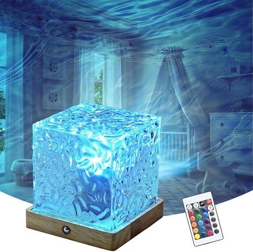 Probuk Projecteur Ciel Étoilé Aurore Boréale, Lampe Cube Cristal 16 Couleurs avec Télécommande USB, Veilleuse Projection Ondulation d’Eau pour Chambre Décoration et Cadeau