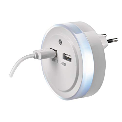 EMOS - Veilleuse avec sortie USB - Interrupteur et capteur crépusculaire - Lumière d'orientation pour chambre d'enfant, escalier, chambre à coucher, cuisine, couloir, 0,3 W - Blanc