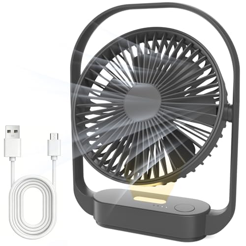 SURFOU Ventilateur de Table Sans Fil 4000mah, 4 Vitesses, 2 Modes Veilleuse, Rechargeable Usb-c, Jusqu’à 20 H D’autonomie, Silencieux, pour Chambre, Chevet, Bureau, Voyage, Noir