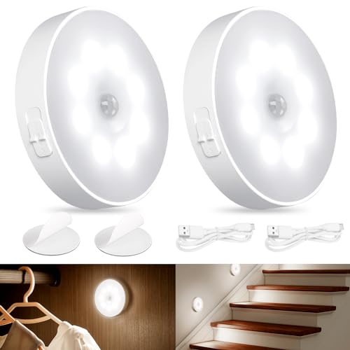 AiQInu Veilleuse Detecteur De Mouvement Interieur, Lot De 2 Lumière LED Avec 3 Modes (Auto/On/Off), Veilleuse Led Autocollante USB Rechargeable Pour Couloir, Escalier