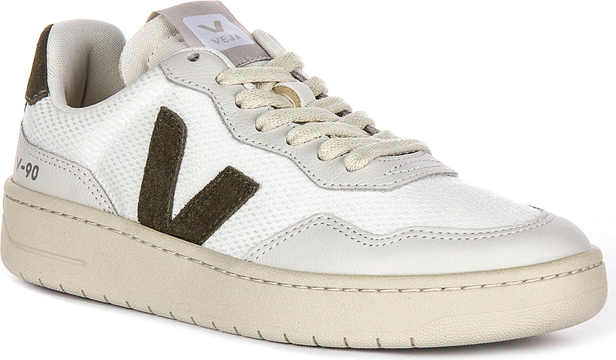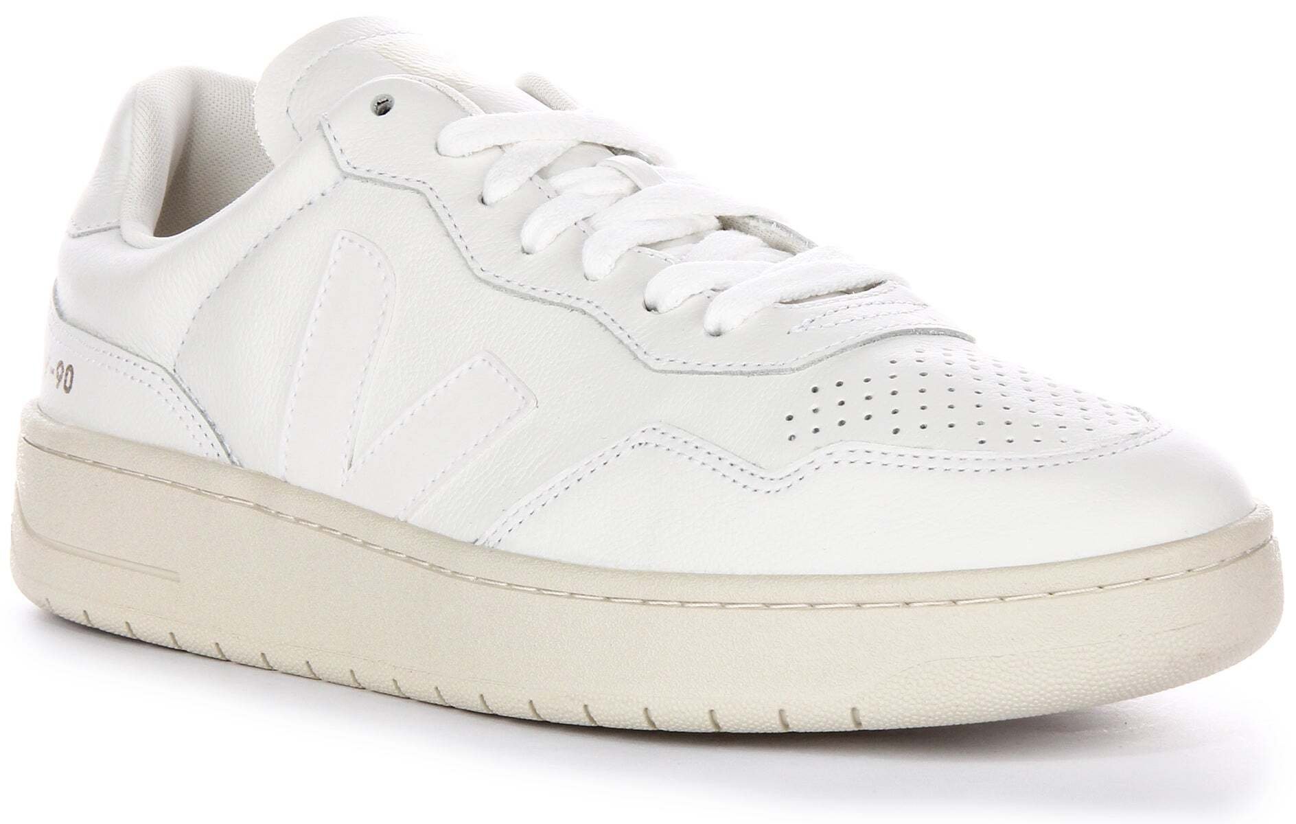 Baskets en cuir pour femme Veja V 90 avec lacets plats et logo en cuir OT sur le côté en blanc cassé - 4 Royaume-Uni - 37 EU - 6 US / Crème