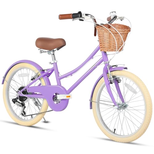 Glerc Missy 20" Pouces Fille Cruiser Enfants Vélo 6 Vitesses Teen Hybrid Vélo de Ville pour Jeunes âge 6 7 8 9 10 11 12 Ans avec Panier en Osier & Poids léger, Violet