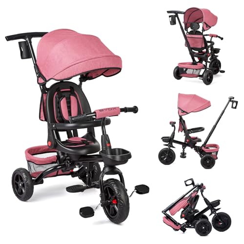 Garvee Tricycle Bébé Évolutif 6 en 1, Tricycle Évolutif 10 Mois à 5 Ans Jusqu'à 25 kg, Vélo Poussette Bebe avec Pare Soleil, Siège Pivotant à 360°, Pédale