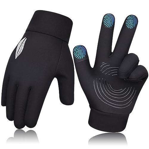 SAWANS Gants de course à pied pour enfants, cyclisme, écran tactile, thermiques, coupe-vent, antidérapants, chauds, pour garçons et filles, pour l'extérieur, le vélo, l'équitation (Noir, L (9-10 ans))
