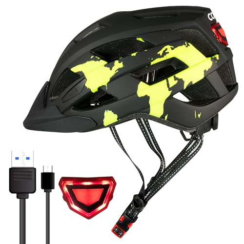 COOZi Casque de vélo pour Adolescents avec lumière LED en Vert – Réglable, Rechargeable, léger et Respirant pour Enfants et Adolescents de 10 à 18 Ans, Absorption des Chocs pour Plus de sécurité,