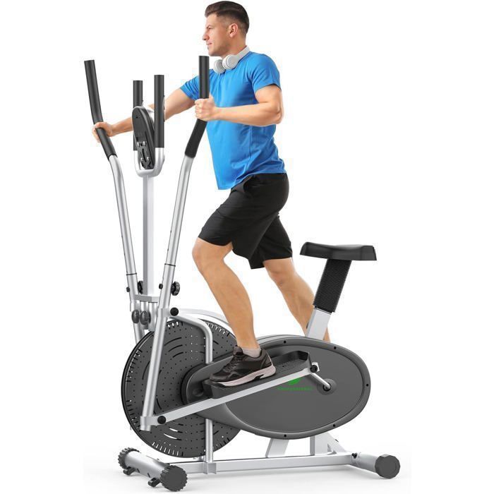 Vélo elliptique 2 - en - 1 pour maison résistance réglable Max 120 kg LCD petite empreinte pour famille et appartement argenté