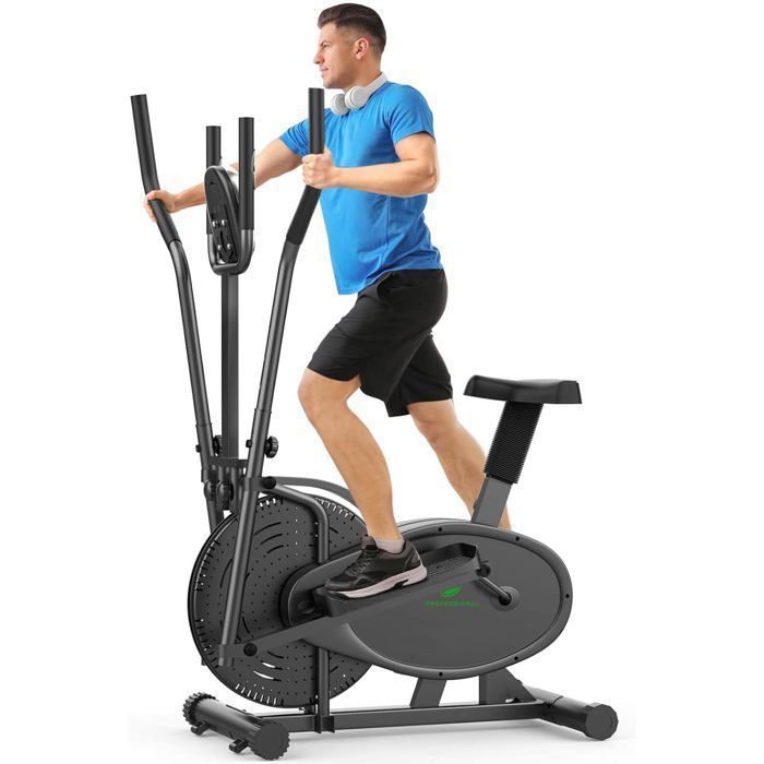 Vélo elliptique 2 - en - 1 pour maison. 16 niveaux résistance max 120 kg. LCD petite empreinte pour famille et appartement noir
