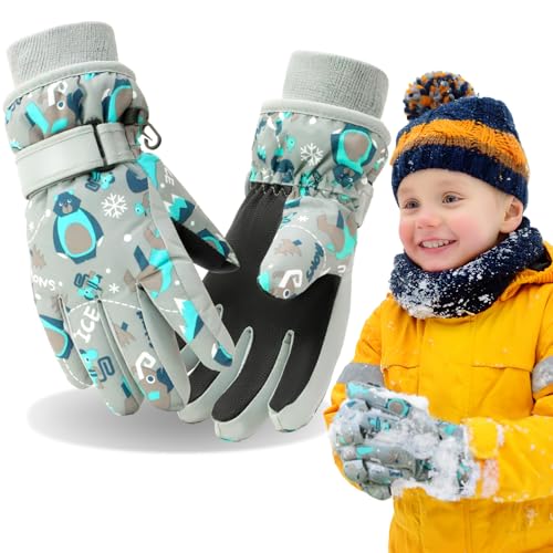 Jupsk Gants Ski Enfant d'hiver Mitaine Moufle Imperméables Velo Gants de Ski Dinosaure Mittens Snowboard Fleece Gloves pour Fille Garçon 4-6 Ans