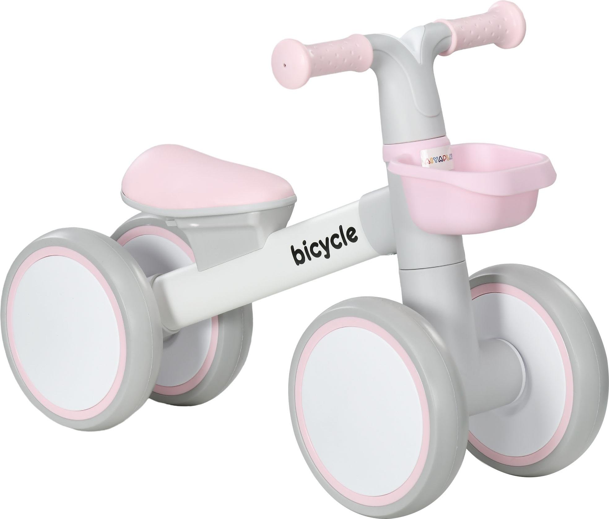 AIYAPLAY Draisienne vélo Enfant 4 roues selle réglable, guidon ergonomique alliage alu. PP, enfant 1 à 3 ans - Gris Blanc Rose