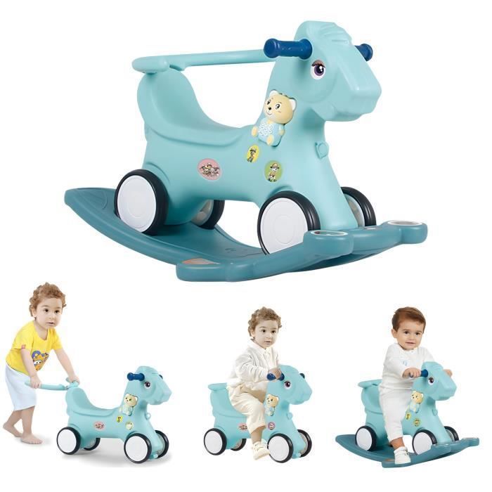 Cheval à bascule 3 en 1 Draisienne Bébé avec Machine à musique Vélo Bébé à 4 Roues Silencieuses pour Garçons et Filles 6-36mois