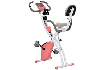 HOMCOM Vélo d'appartement pliant 8 niveaux de résistance écran LCD multifonction suspensions support tablette acier rose blanc