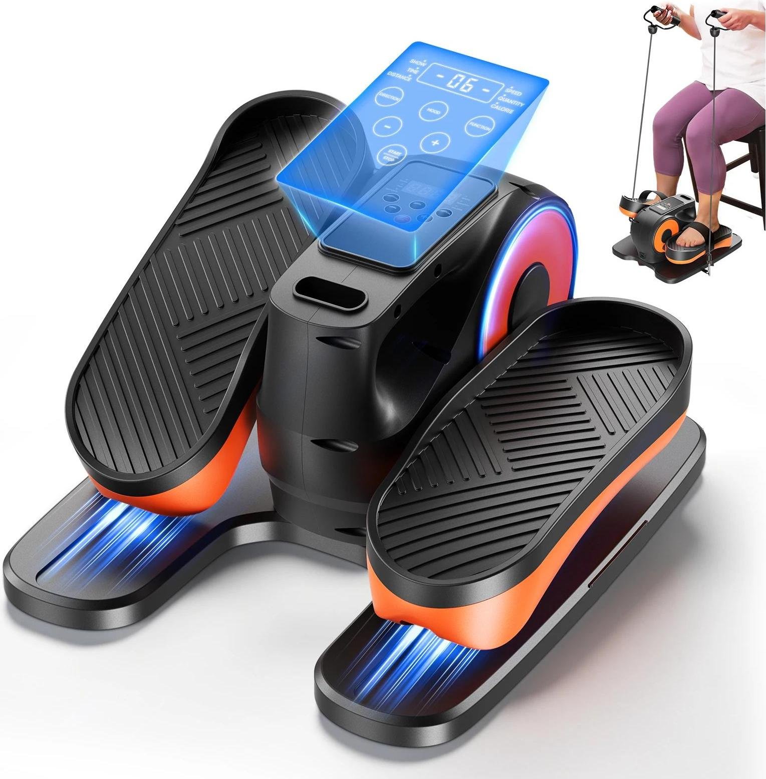 Appareil d'entraînement électrique pour les jambes - Mini stepper/vélo elliptique - Télécommande - Bandes de résistance - À utiliser assis sous le bureau - Rééducation pour les seniors
