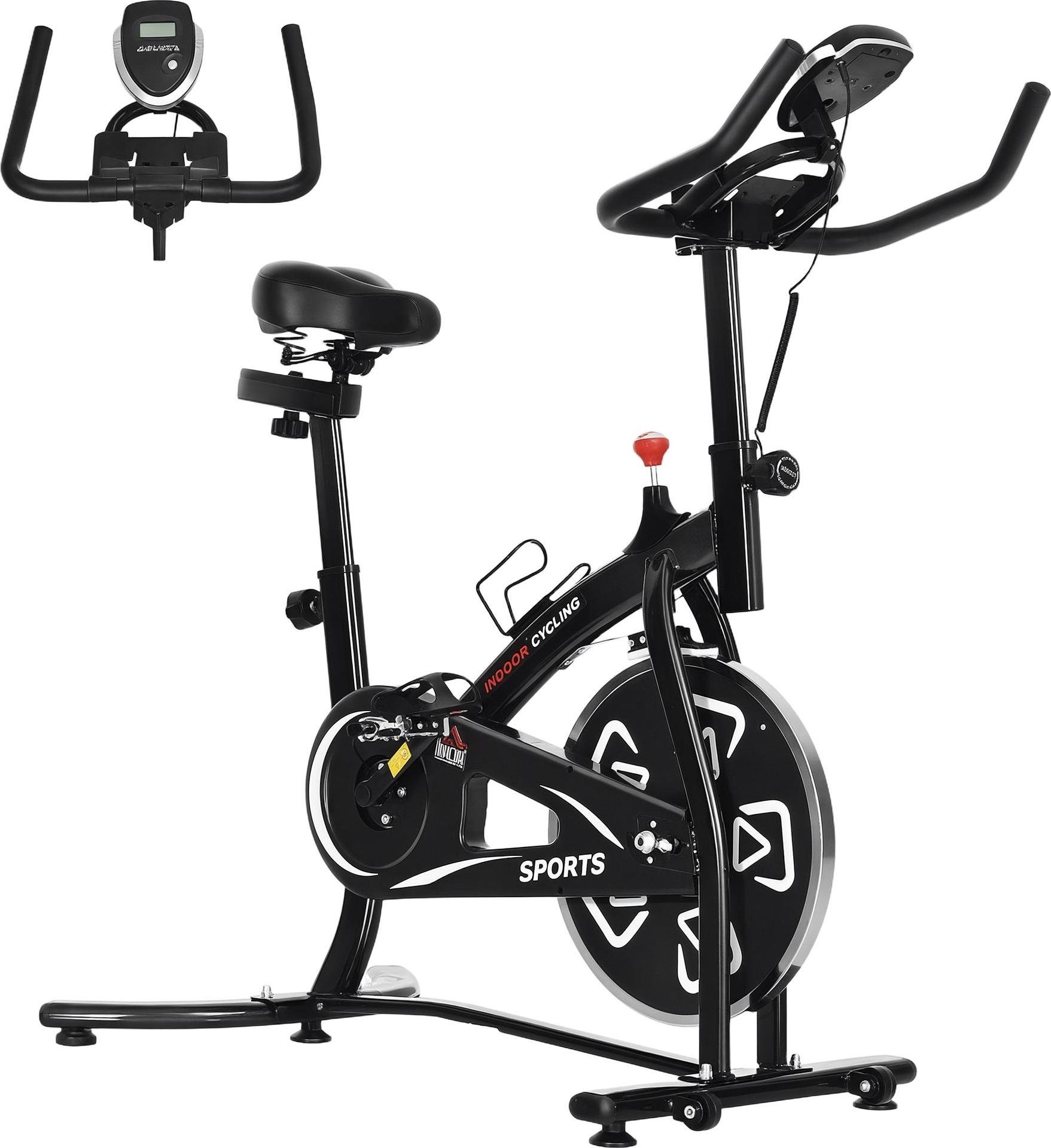 HOMCOM Vélo d'appartement vélo de fitness velo d'intérieur avec écran LCD multifonctions vélo biking cardio-training selle et guidon réglables acier noir