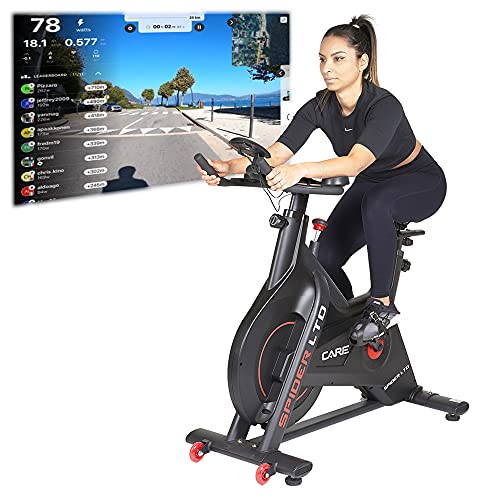 CARE FITNESS - VELO DE BIKING connecté - Spider LTD - Vélo d'appartement - Masse d'inertie 17 KG - 17 programmes - Porte tablette - Connexion Bluetooh