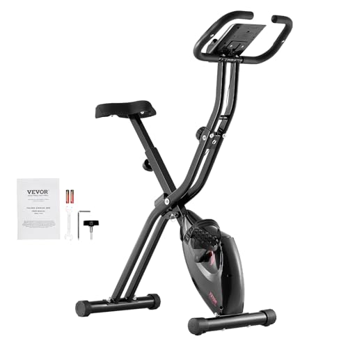 VEVOR Vélo d’Appartement Pliable, Vélo d’Exercice d’Intérieur, Résistance Magnétique Réglable, Coussin de Siège Confortable, Moniteur LCD, Orange