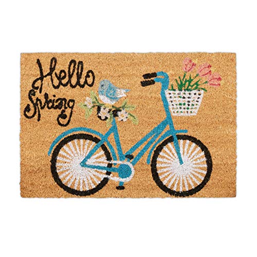 Relaxdays Paillasson Coco, Inscription & Motif vélo, Tapis d’entrée intérieur & extérieur, 40x60 cm, Nature