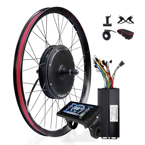 Kit De Conversion De Vélo électrique 48v 2000w Moyeu en Alliage D’Aluminium Moteur De Roue Arrière Affichage Lcd3 à Roulement Fort pour Vélos électriques, 24inch