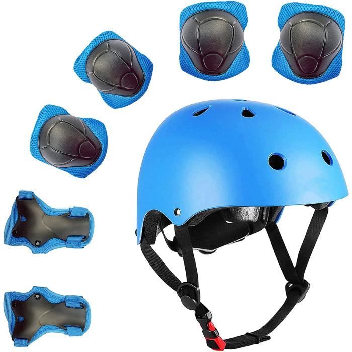 Kit de protection roller pour Enfants - Casque de Velo Enfant - 7 PCS (3 à 8 Ans) - Bleu