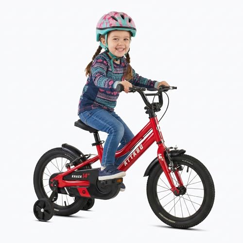 ATTABO Knack 14 - Vélo pour Enfant (2 à 5 Ans) avec Cadre en Aluminium léger (8 kg), Roues de 14 Pouces, pour Une Taille de 85 à 110 cm, Charge jusqu'à 50 kg, Guidon Ergonomique, idéal pour Les