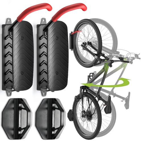 monTEK Lot de 2 supports muraux pivotants pour vélo, cintres pour garage, support mural pour vélo, économiseur d'espace, support vertical pour vélo pouvant supporter jusqu'à 30 kg