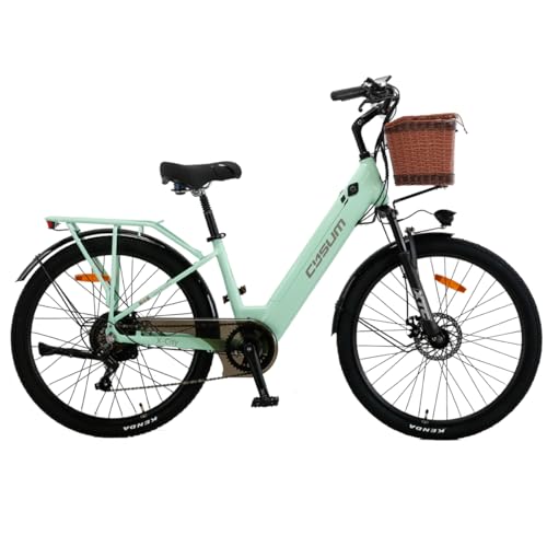 cysum X-City Vélo Électrique Homme Femme, 26" vélo électrique Urbain avec 48V 10.4Ah Batterie Amovible, Vélo de Ville électrique 250W, 7 Vitesses, City E-Bike pour Adulte, Step-Thru (26'' Vert)
