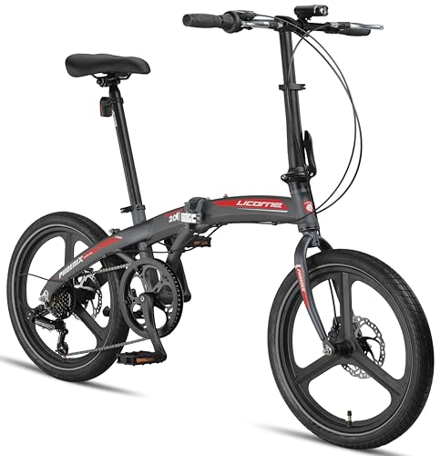 Licorne Bike Phoenix 2D Cross Vélo pliant en aluminium 20" avec frein à disque et frein à disque Pour homme et femme 7 vitesses Cadre en aluminium (roues Mag, anthracite/rouge)