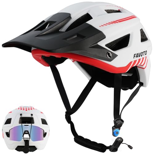 Favoto Casque de Vélo Tout-Terrain - Technologie Double Inmould Casque VTT Cyclisme Léger avec Visière pour Adultes Certifié CE L 59-61cm Réglable Blanc