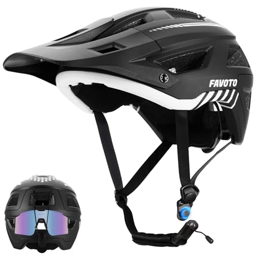 Favoto Casque de Vélo Tout-Terrain - Technologie Double Inmould Casque VTT Cyclisme Léger avec Visière pour Adultes Certifié CE L 59-61cm Réglable Noir Blanc