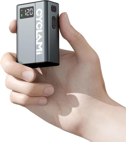 CYCLAMI A3MAX Mini Pompe à vélo électrique, compresseur Portable 150 PSI, Pompe à air compacte pour valves Presta et Schrader pour vélos de Route, VTT et vélos électriques