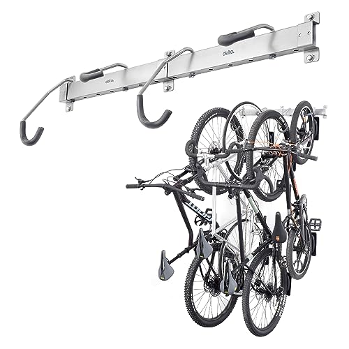 Delta Cycle - Support Mural pour 4 vélos de Garage - Support de Rangement pour vélo pour VTT, vélo de Route et vélo électrique - Peut Supporter jusqu'à 136 kg - Design avec Crochet décalé entièrement