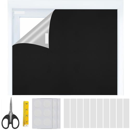 LALAGO 100x145cm Volet Interieur Fenetre Sans Percage avec 35 Velcros et 6 Ventouses, Film Store Occultant Fenêtre pour Velux de Toit, 100% Blackout Matériau Rideau Occultant pour Bébé Chambres Bureau