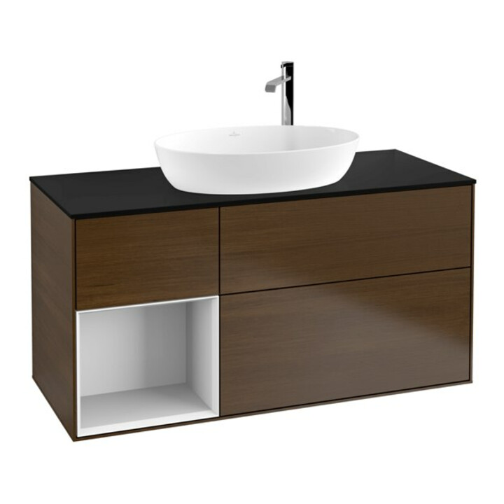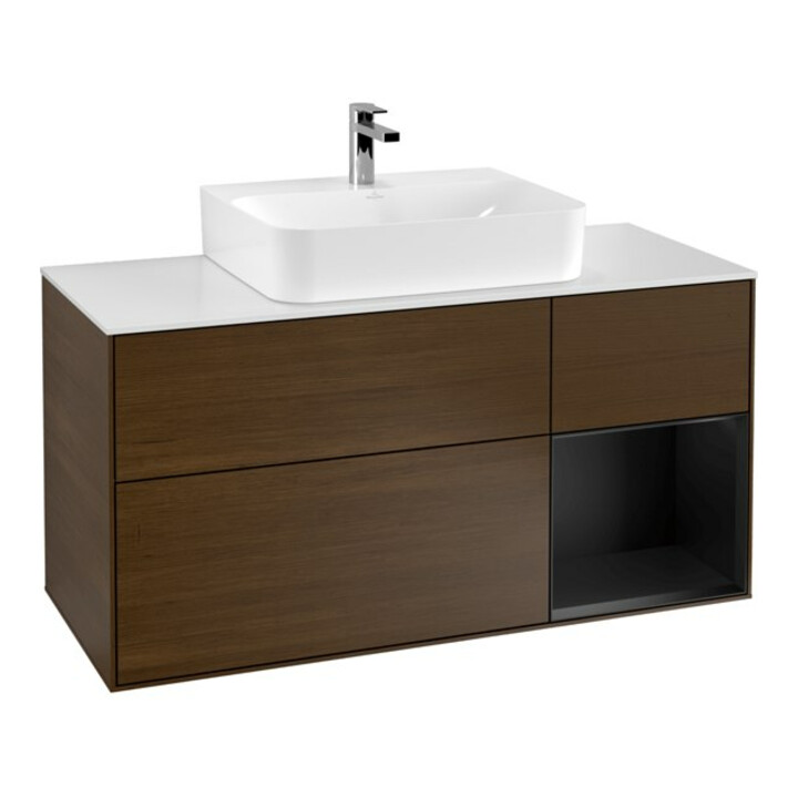 Villeroy & Boch V&B Meuble sous-lavabo Finion 120 cm, blanc mat, tiroir droit, noyer veneer