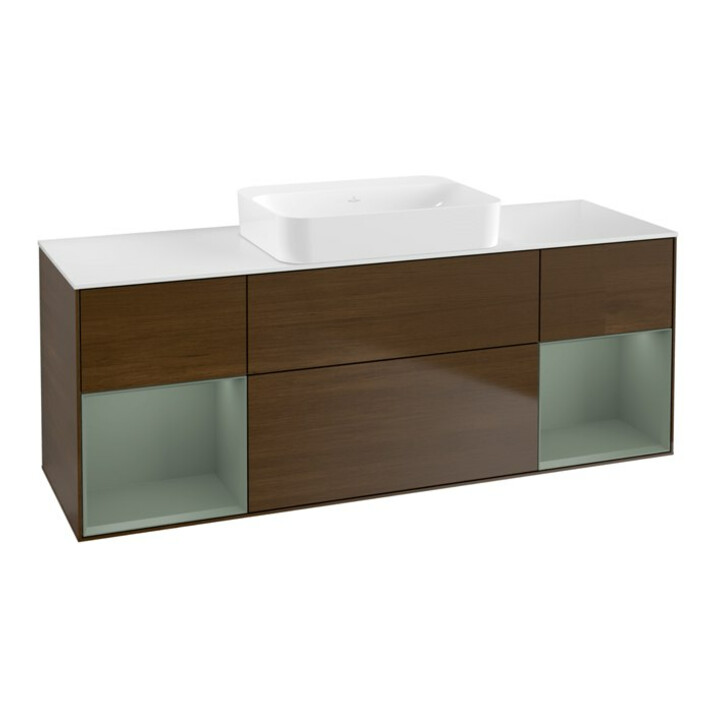 Villeroy & Boch V&B Meuble sous-lavabo Finion 160x60,3x50,1cm, éclairage mural, chêne huilé, noyer veneer