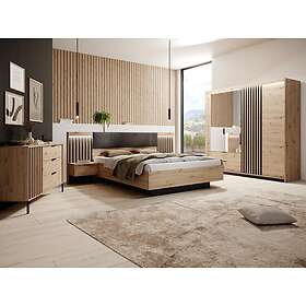 Vente Unique Lit coffre avec chevets 160 x 200 cm Avec LEDs Coloris : Naturel et anthracite ELYNIA